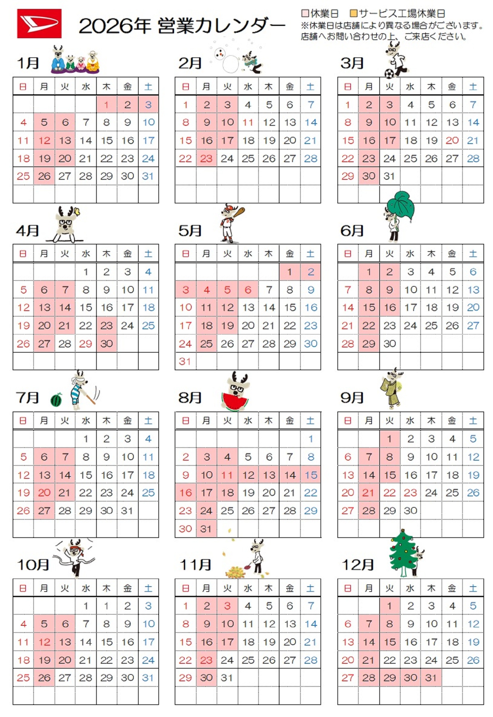 2026年 年間営業カレンダー